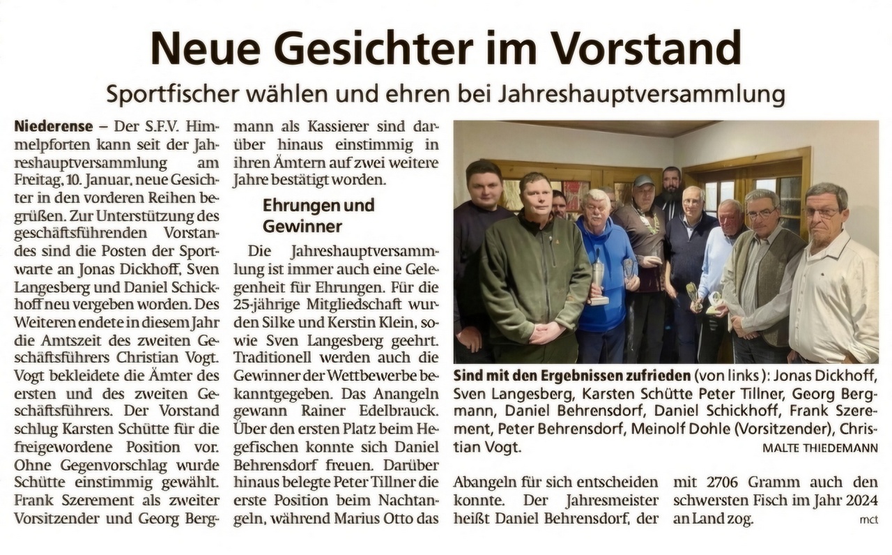 Lasst uns gemeinsam und zuversichtlich in die neue Saison blicken. Der nächste Frühling lässt nicht mehr lange auf sich warten und wir können wieder gemeinsam unserem schönen Hobby, an unserem wunderschönen Gewässer und Vereinsheim folgen!Petri Heil und bleibt gesund, Euer Vorstand.
