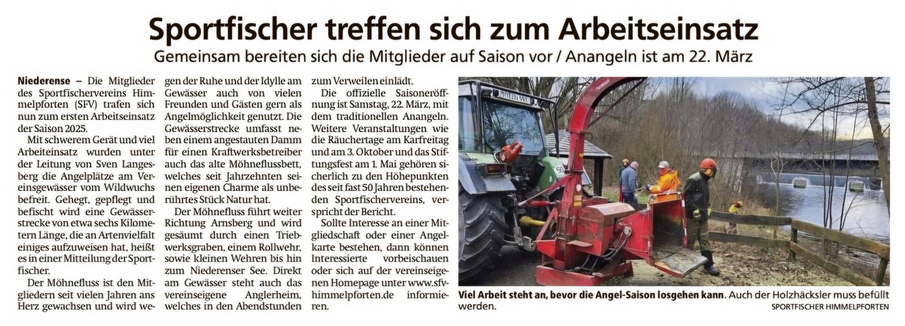 Sollte Interesse an einer Angelkarte oder Mitgliedschaft im Sport-Fischer-Verein bestehen, können sich Interessenten gerne unter der Telefonnummer 02938-1715 informieren. Mo/Mi/Do/Fr ab 18.00 Uhr.